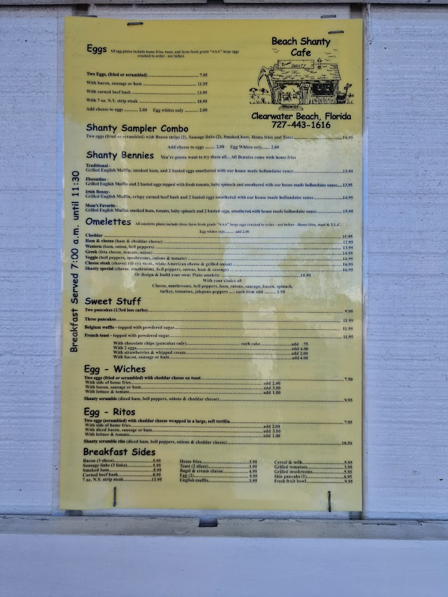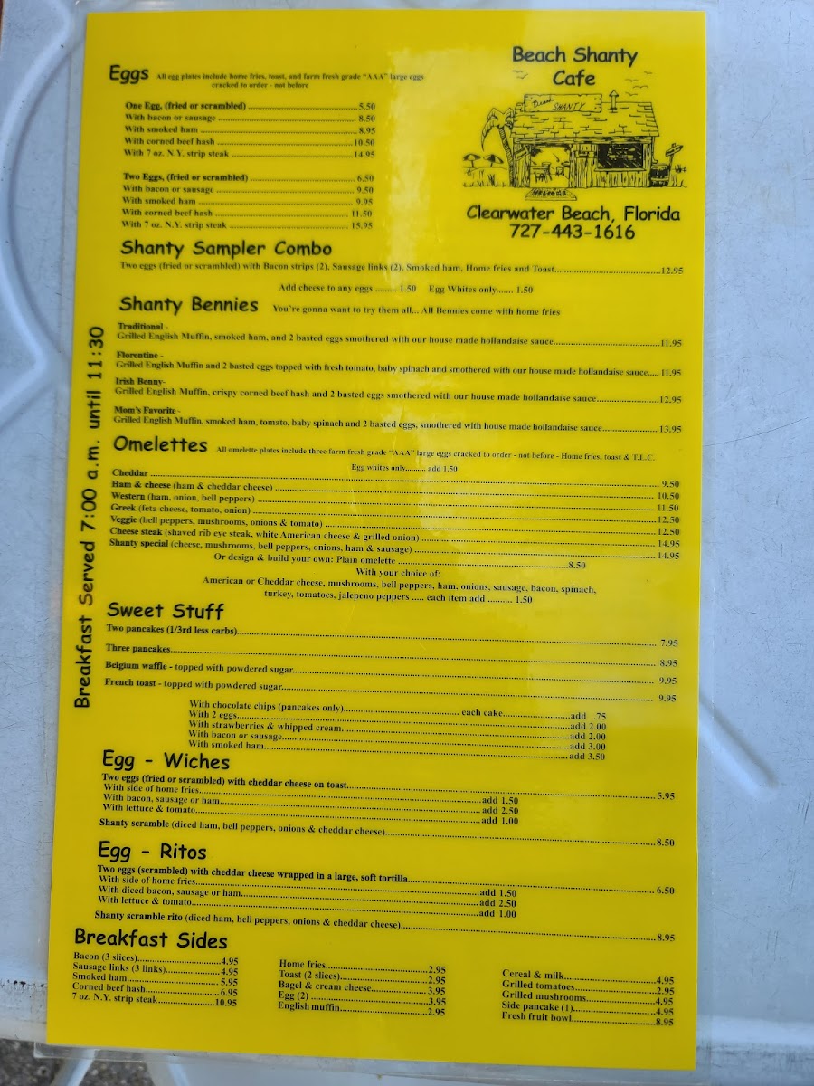 Welcome to the Beach Shanty Cafe, nestled at 397 Mandalay Ave in Clearwater, FL, a delightfully charming spot for breakfast enthusiasts. This cafe captures the essence of a beachside diner, offering a menu that tantalizes the palate with its generous portions and fresh ingredients.